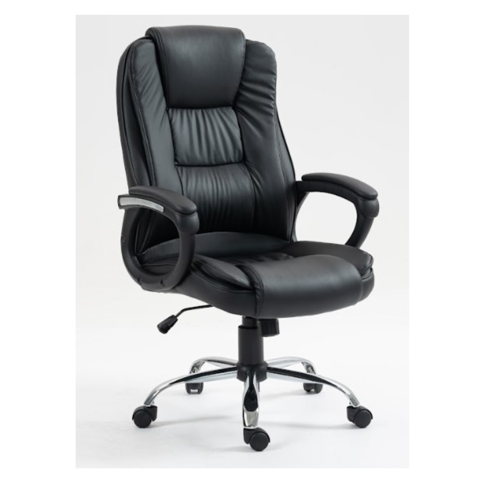 — tapicerowany ekoskórą— zagłówek zintegrowany z oparciem— wyposażony w mechanizm bujania się tilt— blokada w pozycji do pracy— regulacja siły wychylenia— regulacja wysokości siedziska— podłokietniki z miękkimi nakładkami zapewniające wygodne podparcie dla ramion— podstawa metalowa, chromowana— kółka z oponkami do twardych powierzchni