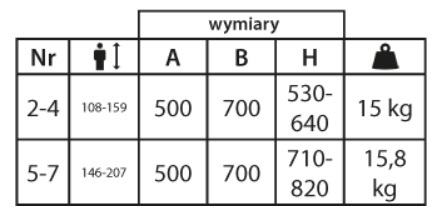 - Skokowa regulacja wysokości za pomocą śrub ustalających wymaganą wysokość.
