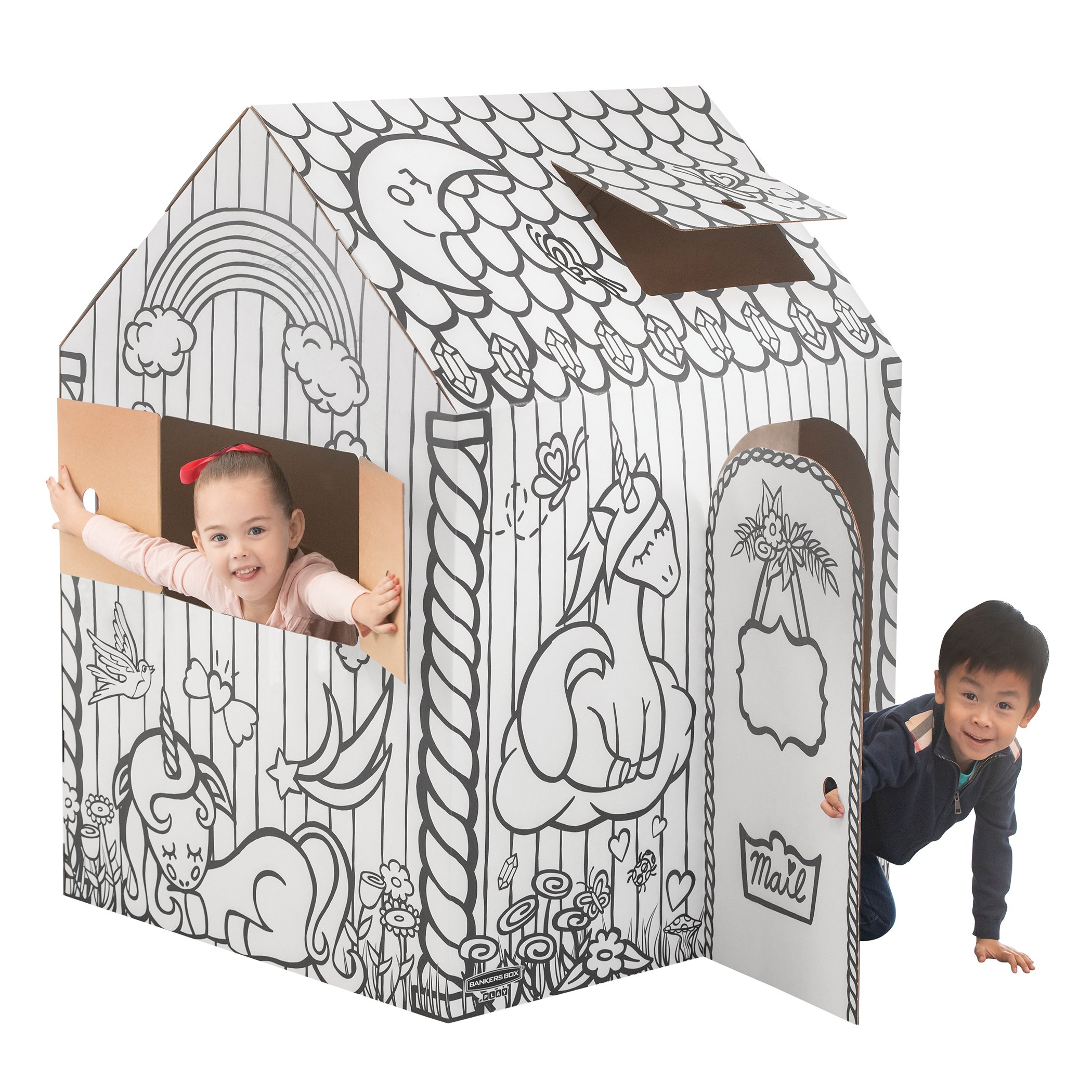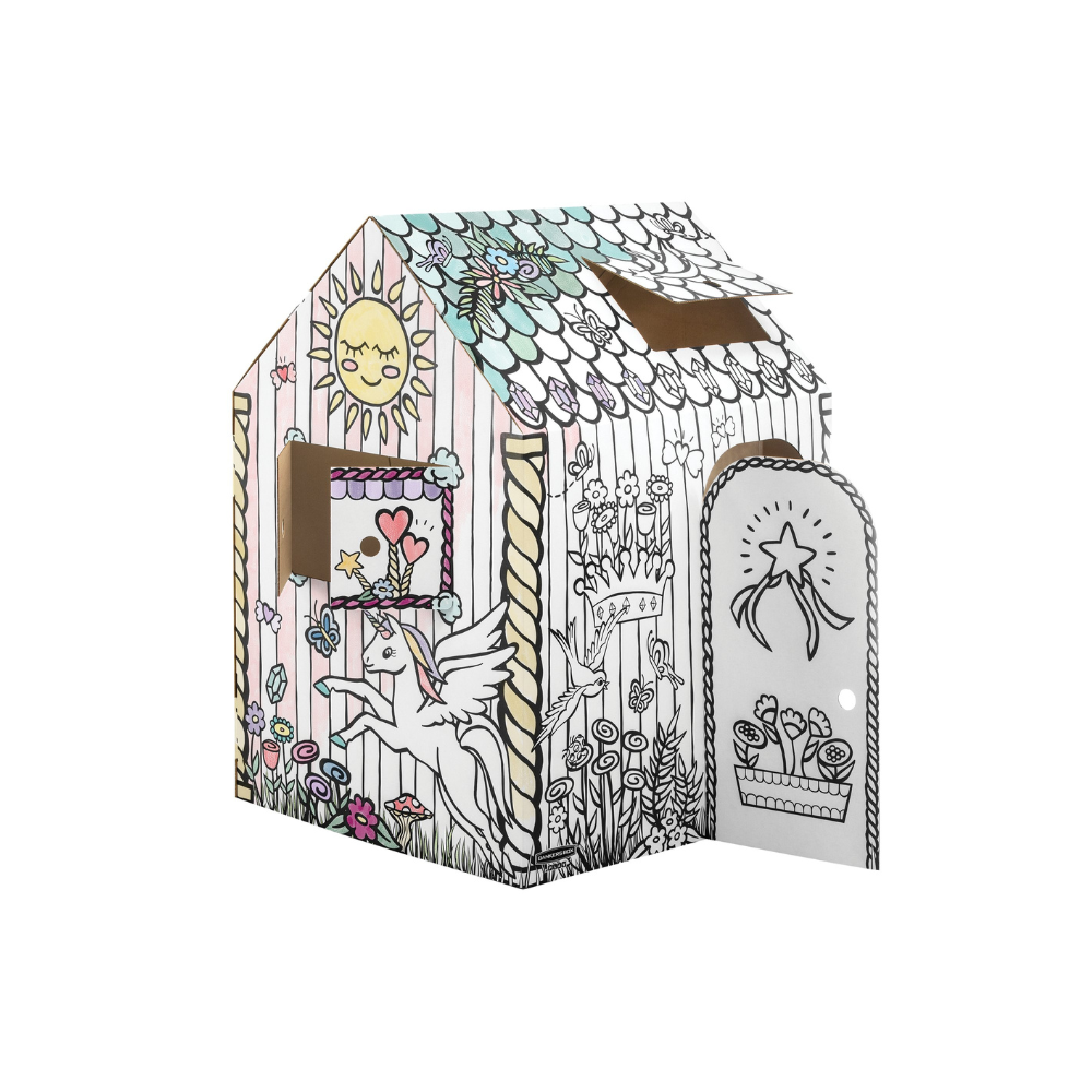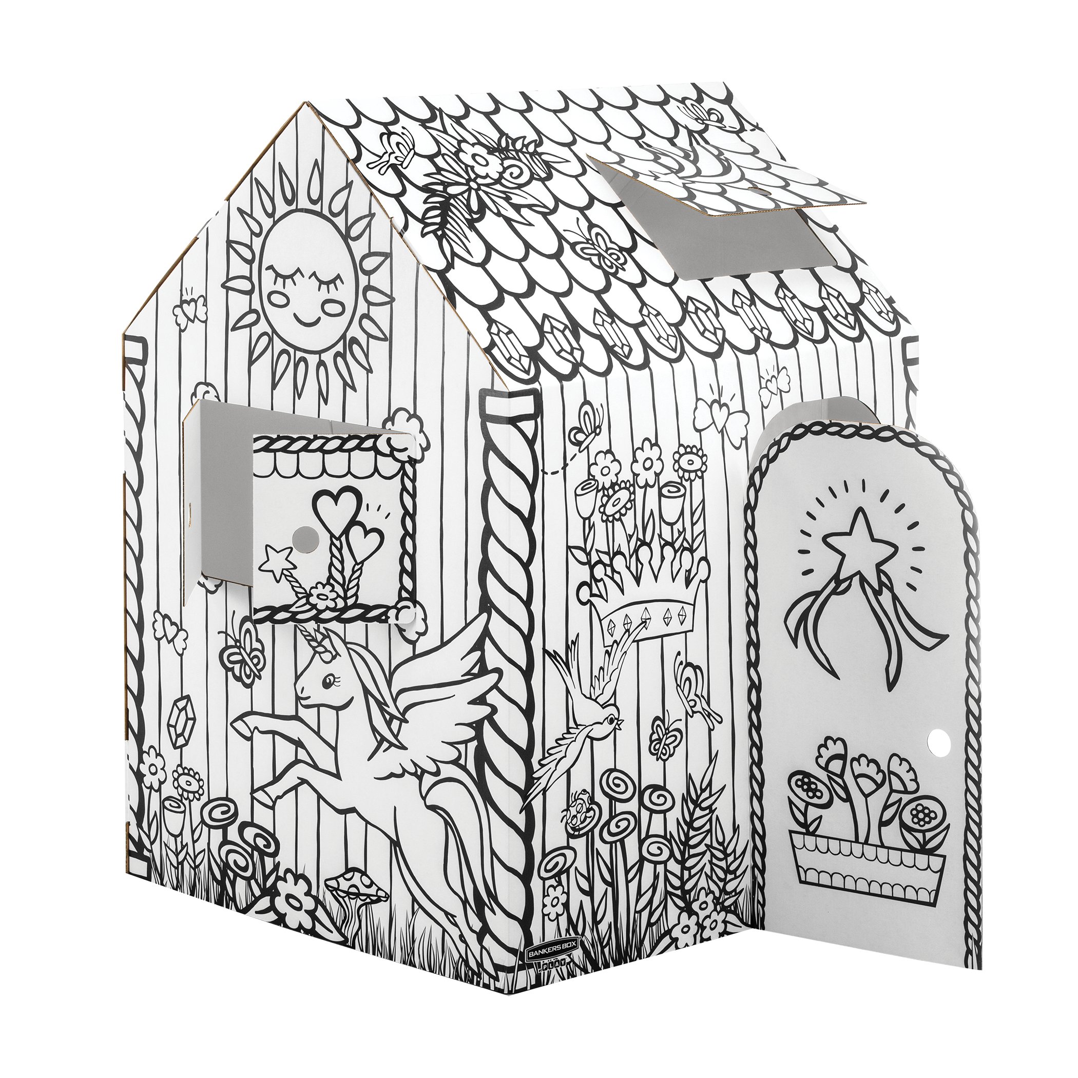 Zaprojektowany z myślą o niekończącej się zabawie! Ten wyjątkowy domek do kolorowania został wykonany z wytrzymałej, falistej tektury, dzięki czemu przetrwa wiele dziecięcych przygód i godzin kreatywnej zabawy.