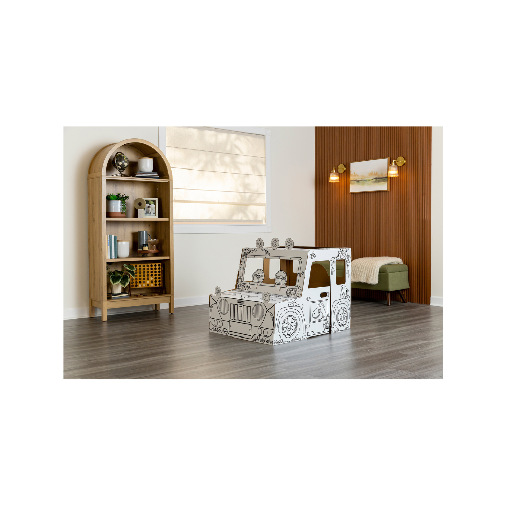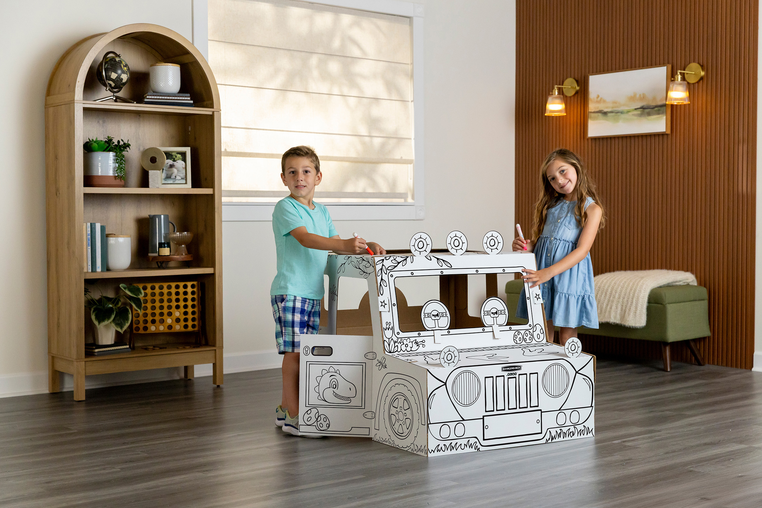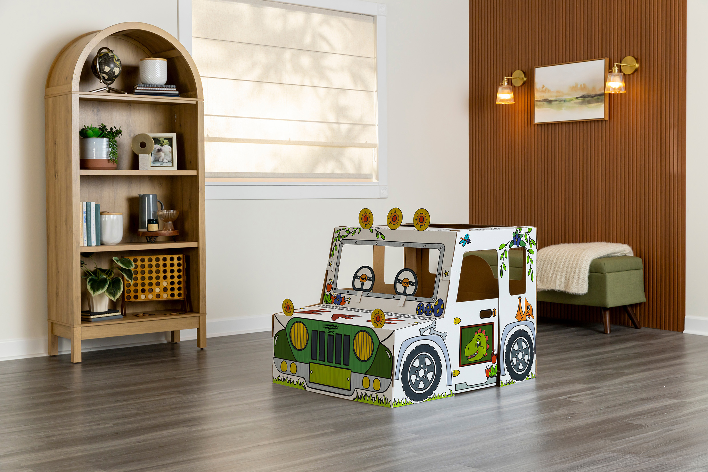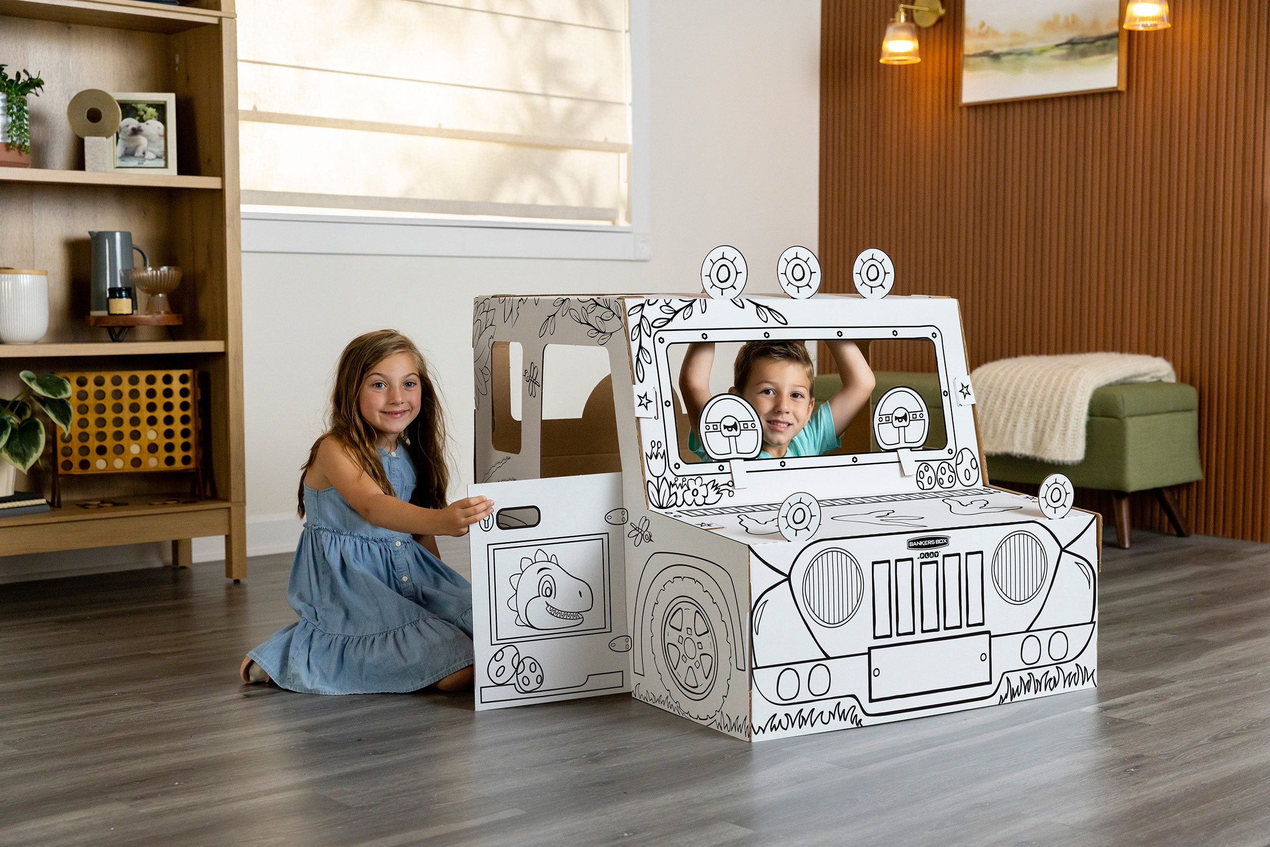 Przygotuj się na ekscytującą podróż w świat dinozaurów z tekturowym samochodem do kolorowania! Pokrytą ilustracjami przyjaznych dinozaurów, dżungli i skamielin, dzieci mogą ozdabiać według własnego pomysłu, tworząc swoją unikalną wersję pojazdu.