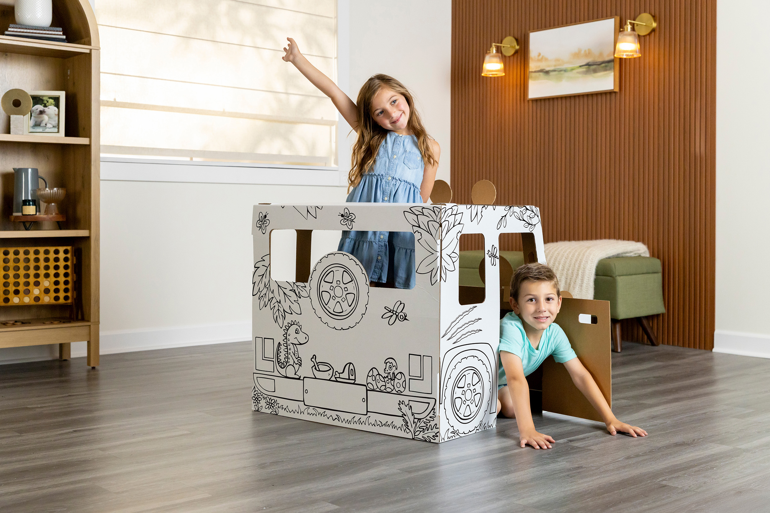 Solidna konstrukcja i łatwy montaż Wykonana z mocnej, falistej tektury FSC®, ciężarówka jest stabilna i trwała. Dzięki systemowi wsuwanych elementów można ją złożyć w kilka minut – bez kleju, taśmy czy narzędzi.