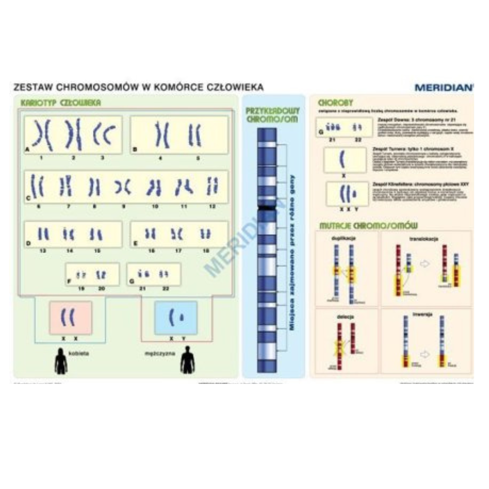 Podstawy genetyki – chromosomy w komórce człowieka – ścienna plansza dydaktyczna
