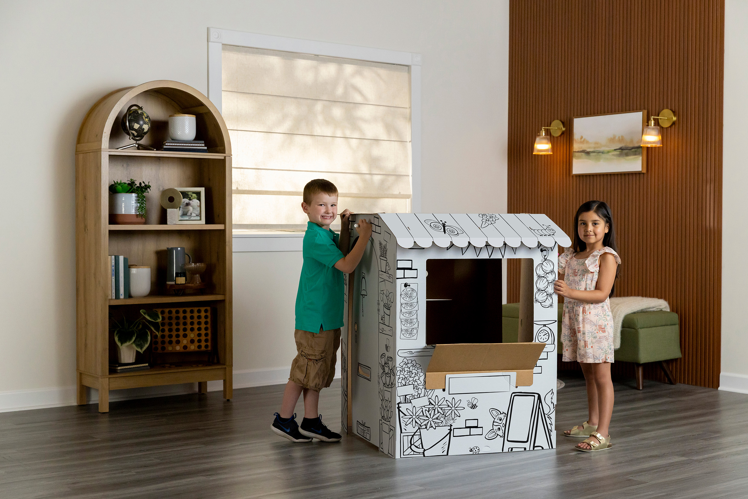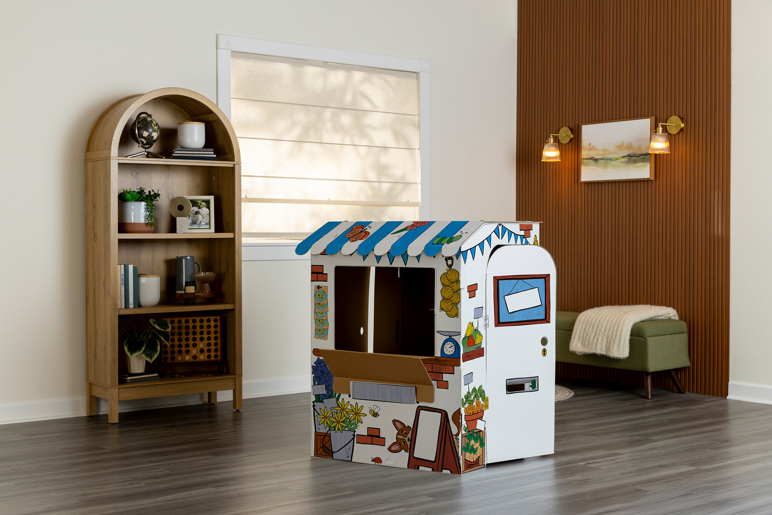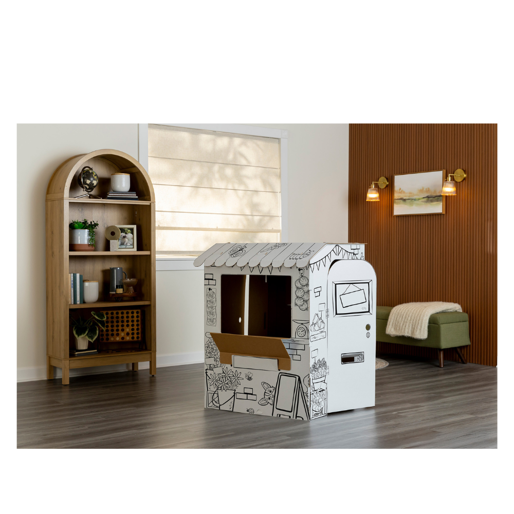 Stoisko do kolorowania z tektury – kreatywna zabawa w mały targ