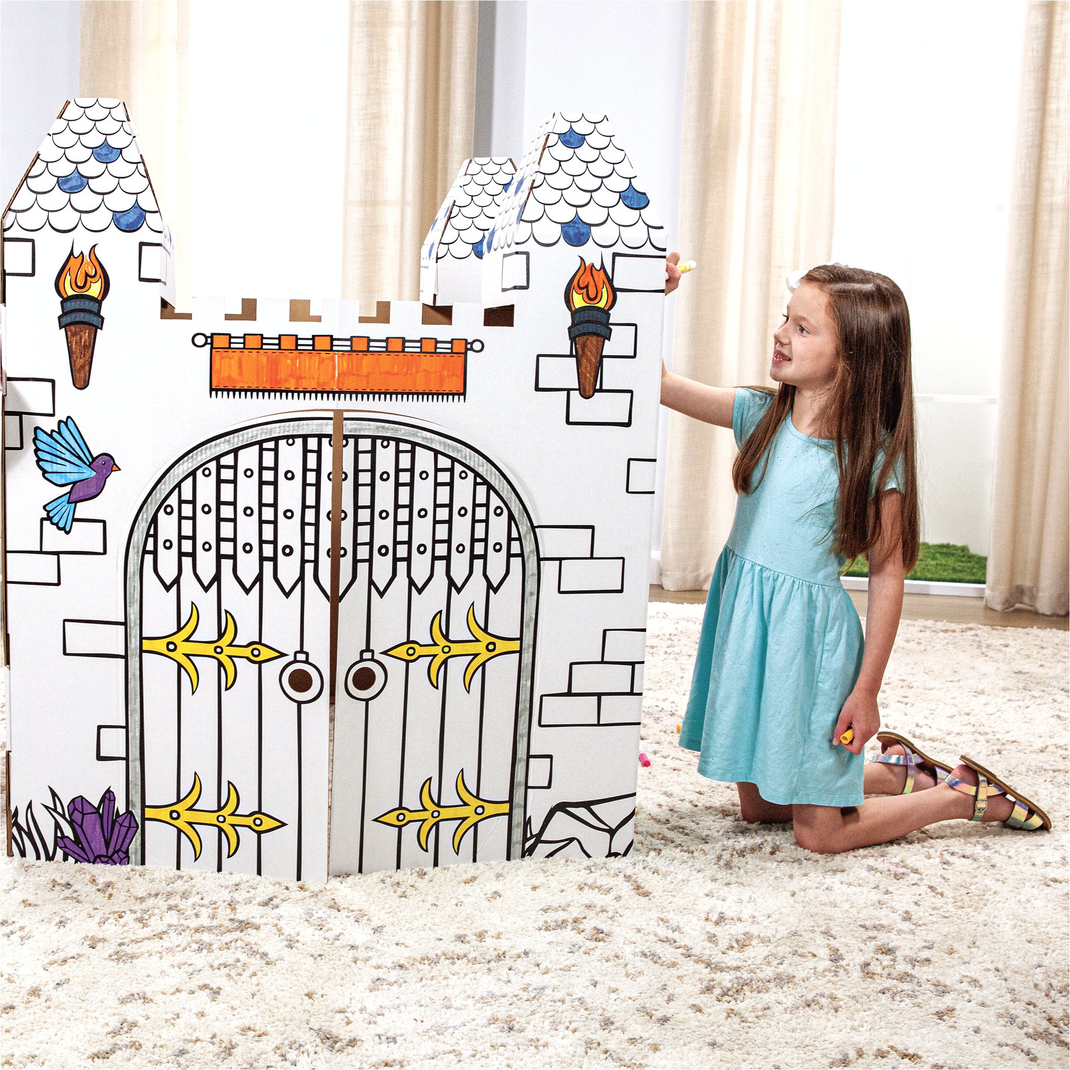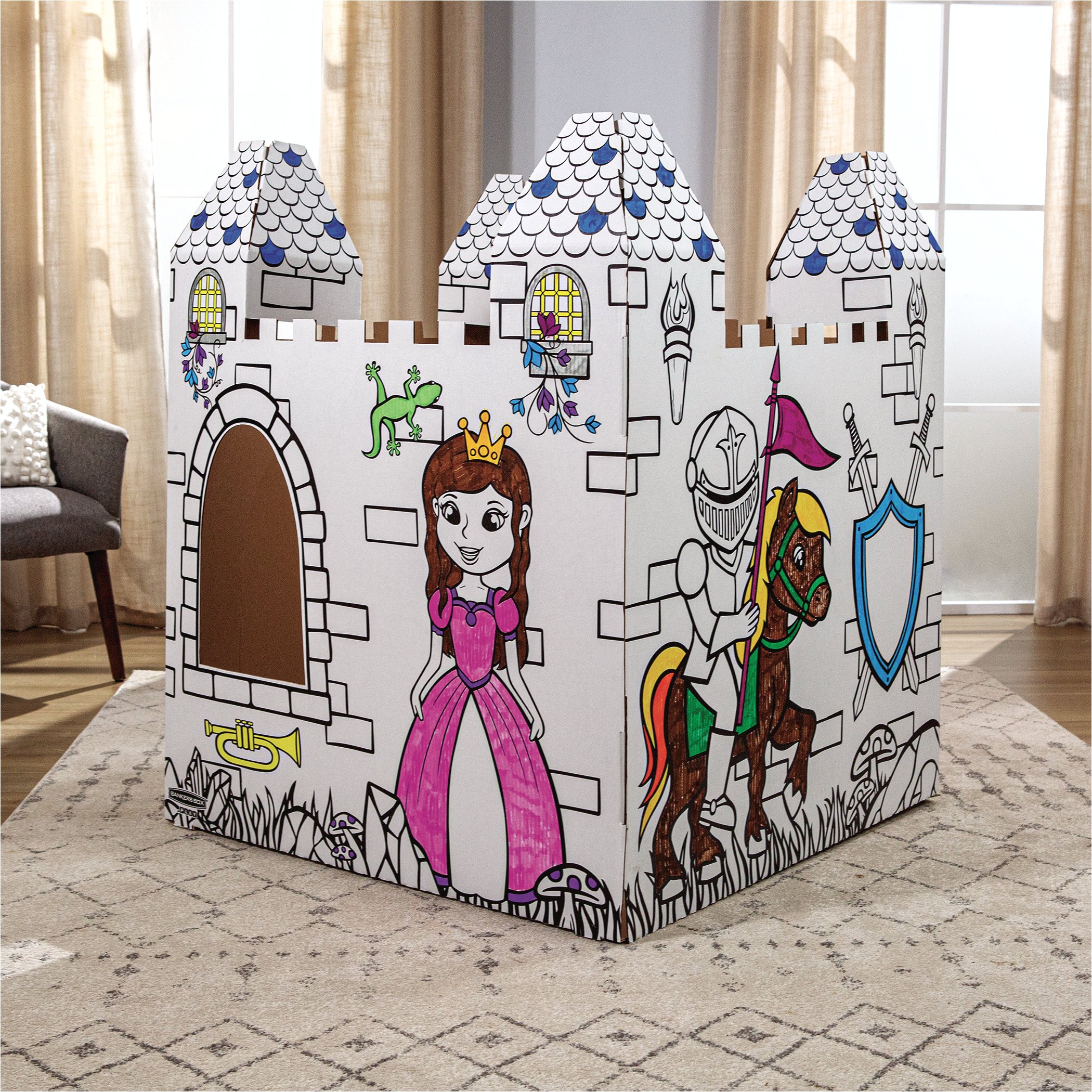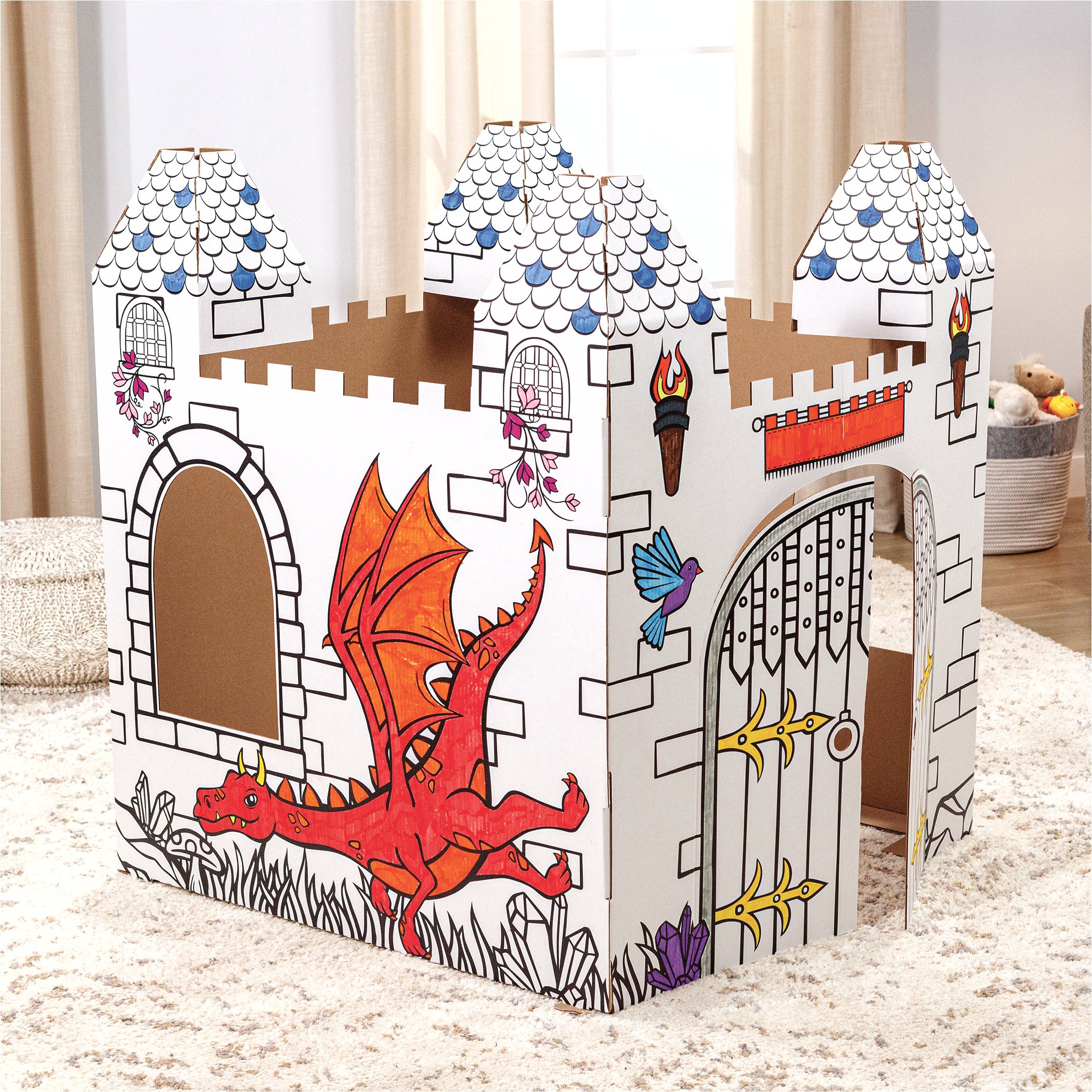 Pobudź dziecięcą wyobraźnię dzięki wyjątkowemu zamkowi do kolorowania z tektury, zaprojektowanemu na godziny twórczej i magicznej zabawy. Wykonany z mocnej, falistej tektury, zamek przetrwa niezliczone królewskie przygody – od urodzinowych bali po bitwy ze smokami.