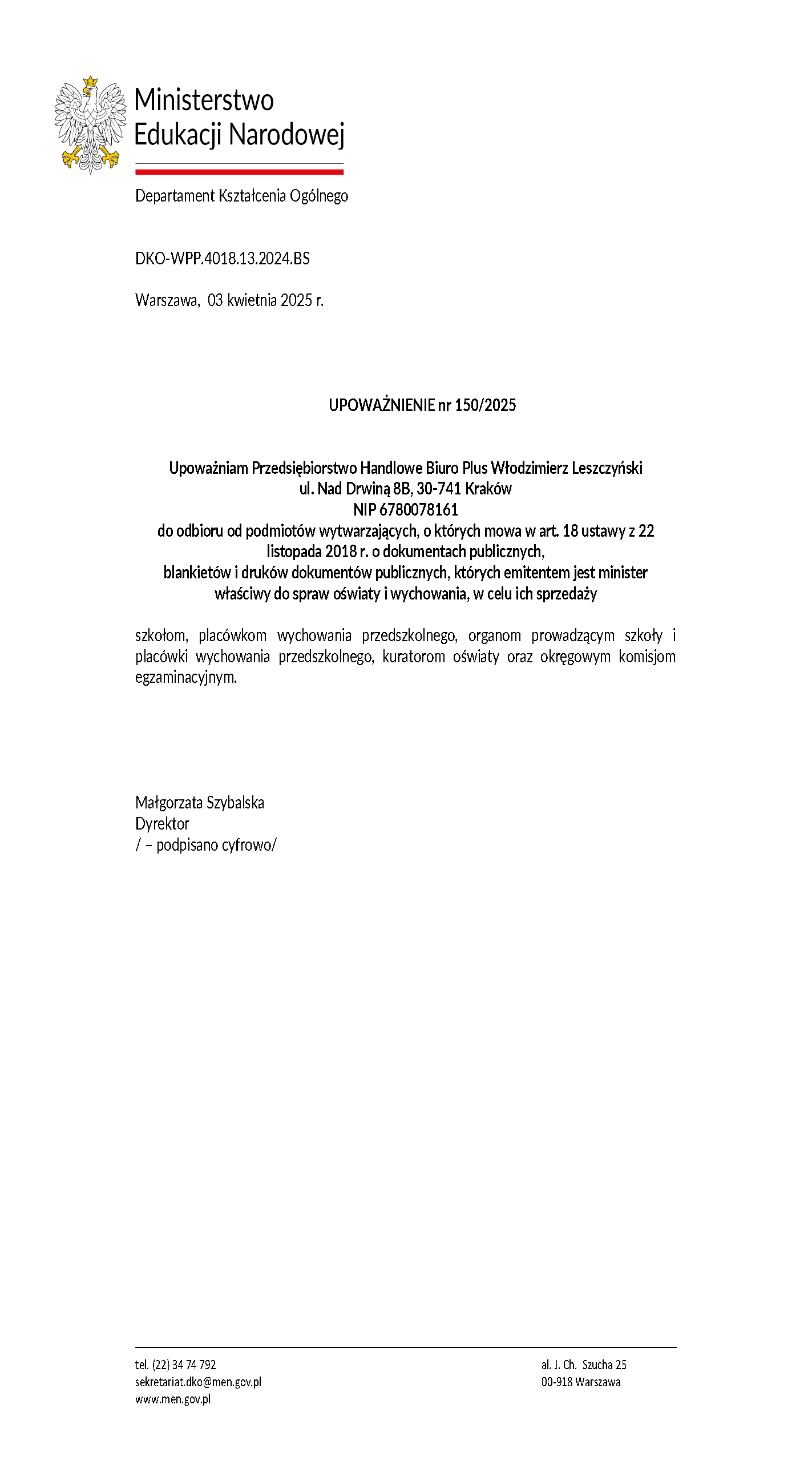 Upoważnienie MEN – blankiety i druki dokumentów publicznych